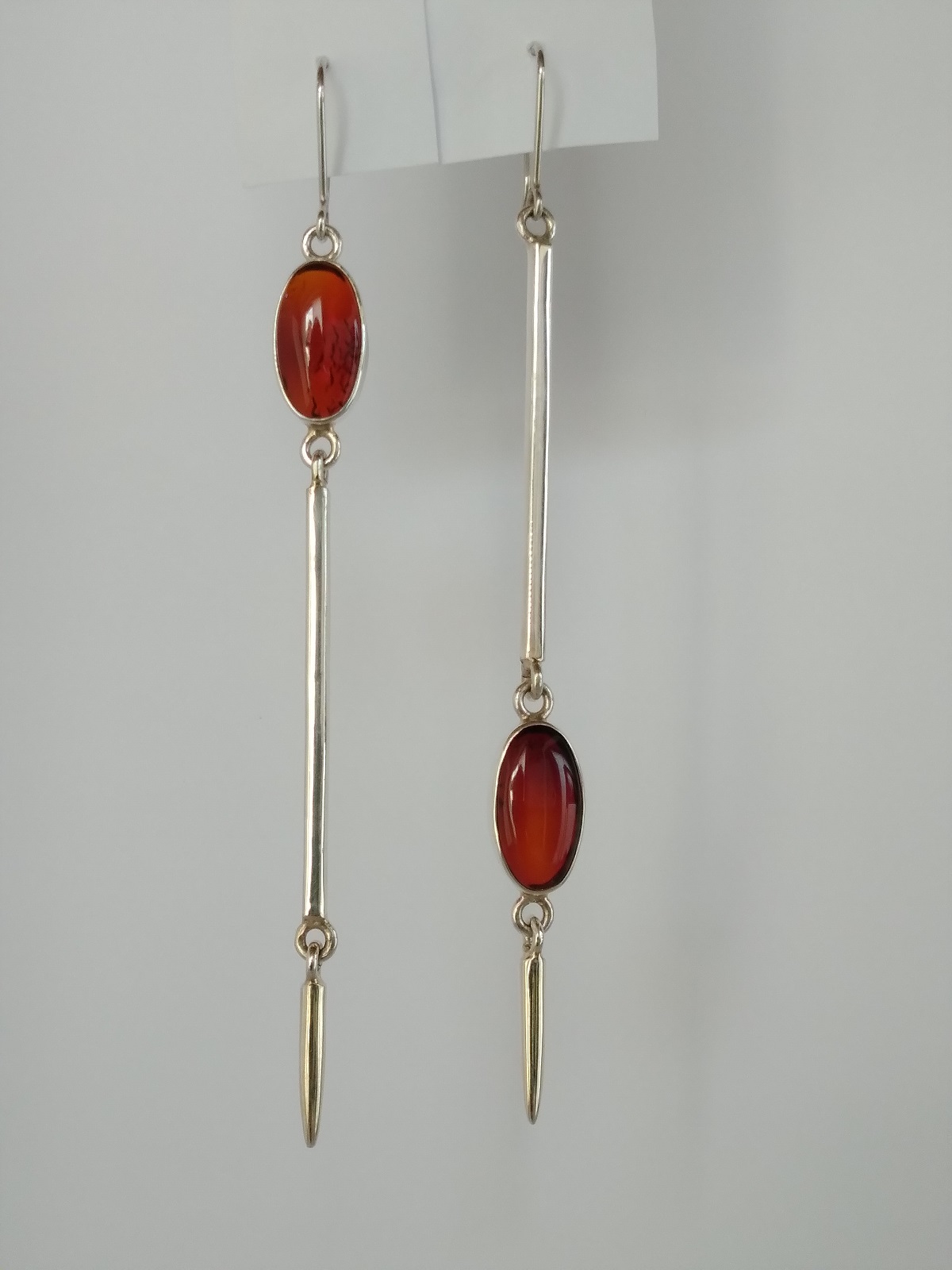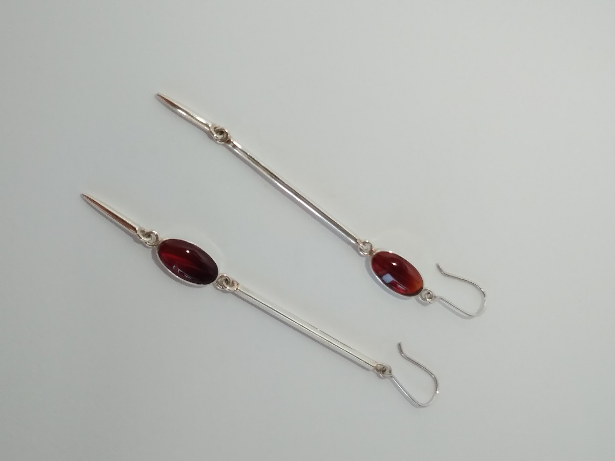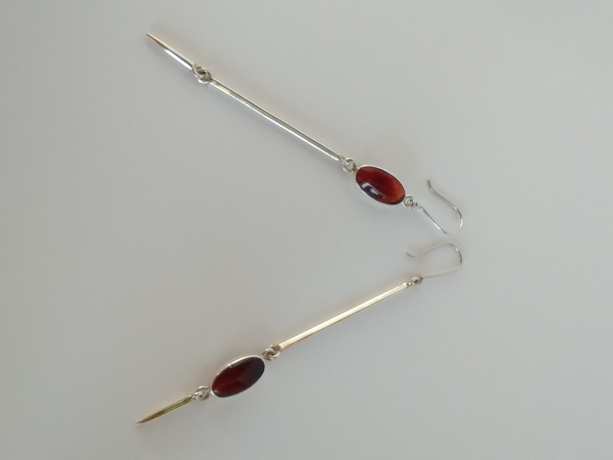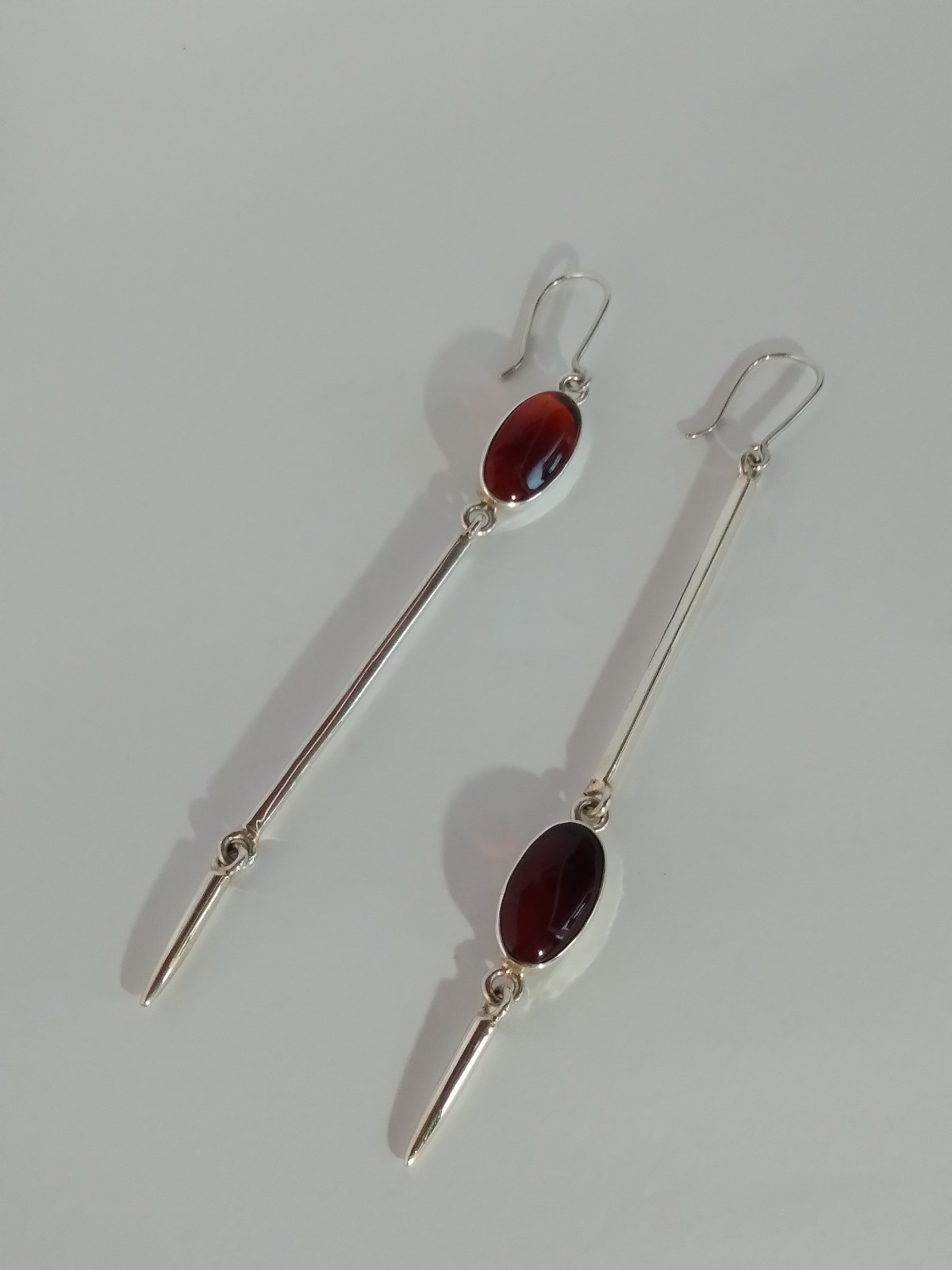 Aretes bala en forma oval de ámbar en tono rojo cereza sobre postes de plata .925. Código 4317.