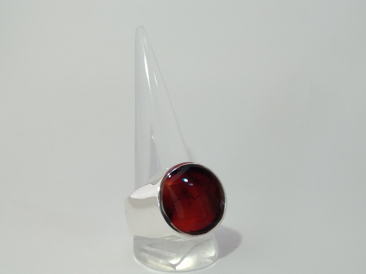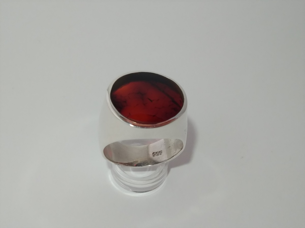 Este diseño clásico puede ser tanto para dama como para caballero. Tiene forma circular y está montado con ámbar amarillo jaspeado que tiene la parte de atrás en bruto, lo que le da unas tonalidades únicas. Elaborado en en plata .925. Código 1170.