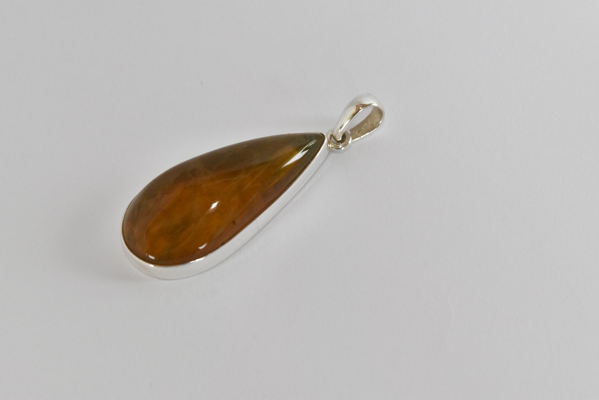 BAJO PEDIDO Dije biselado de plata .925 en forma de gota en tono verde lechoso, incluye pasacadena de plata .925. Código 4133