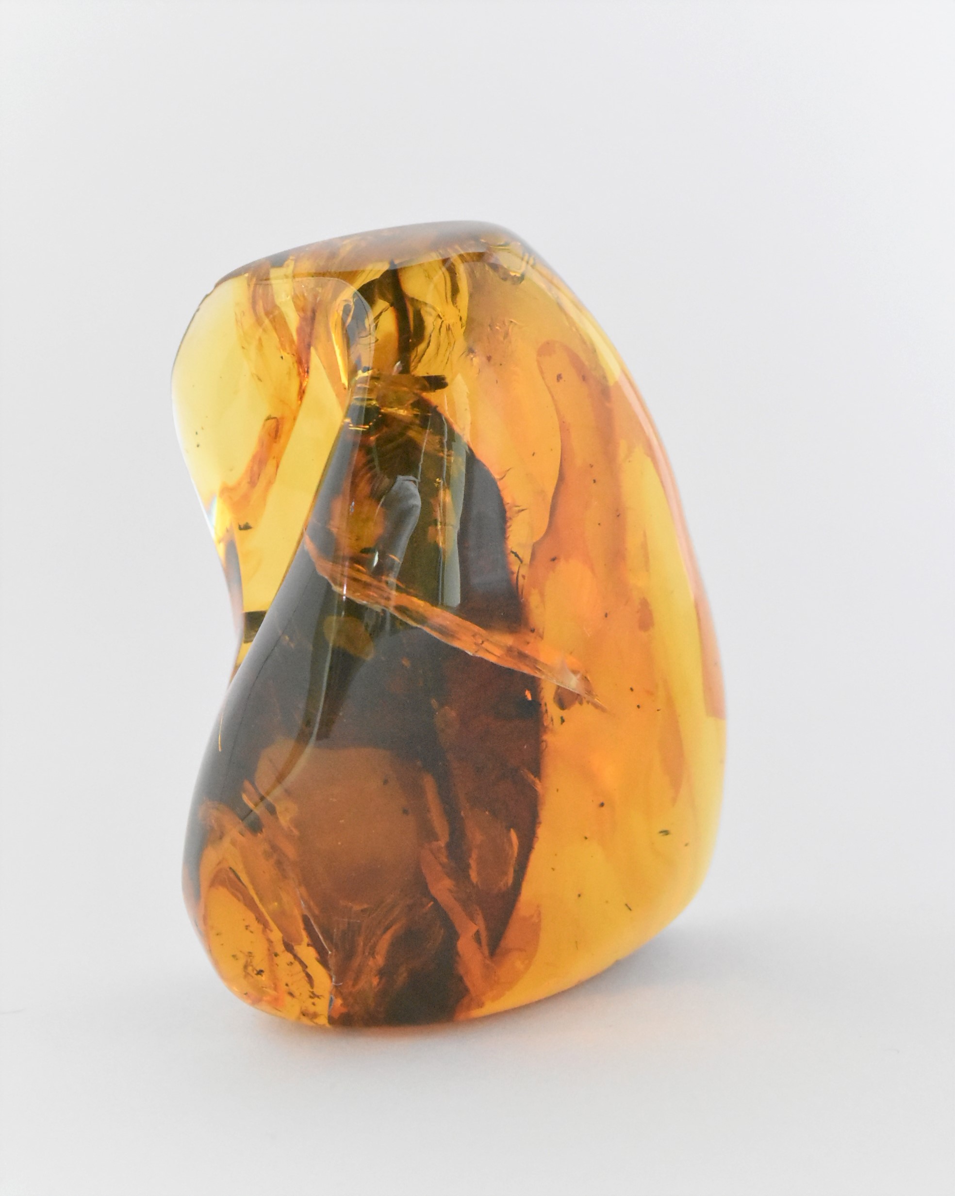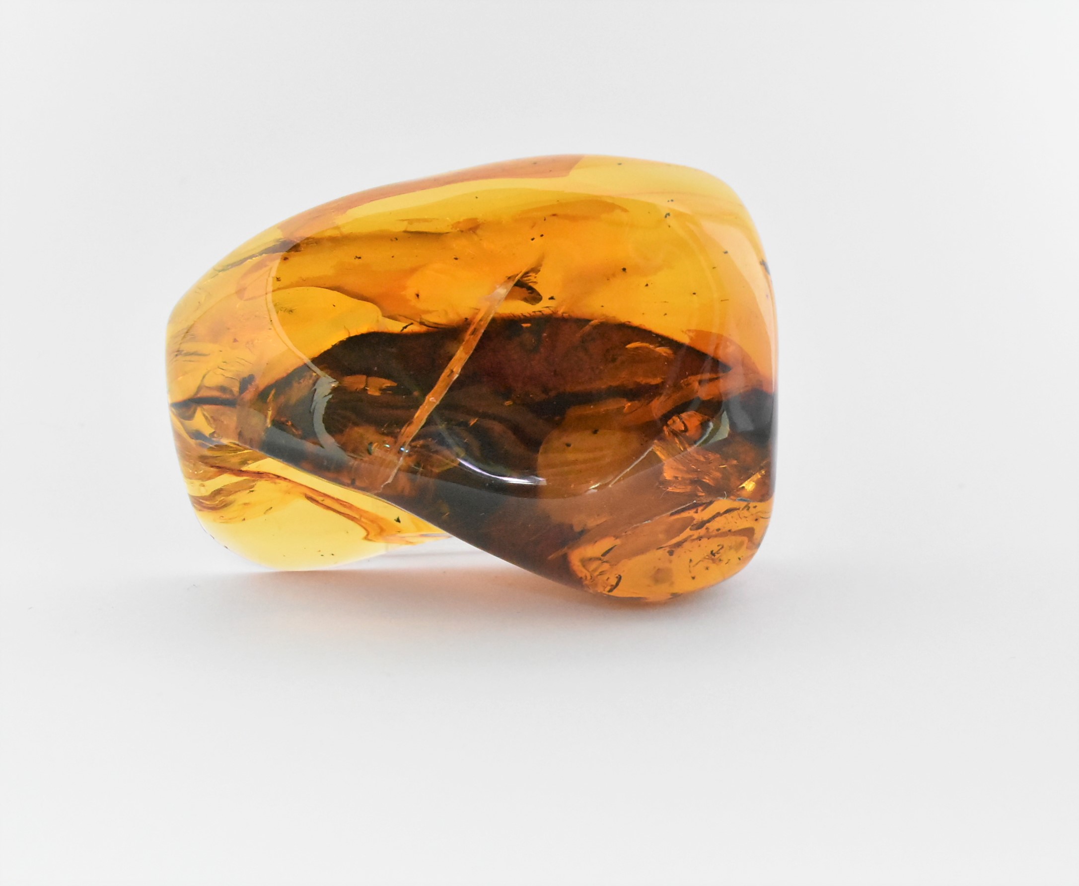 Pieza pulida de ambar amarillo con fragmento de hoja.