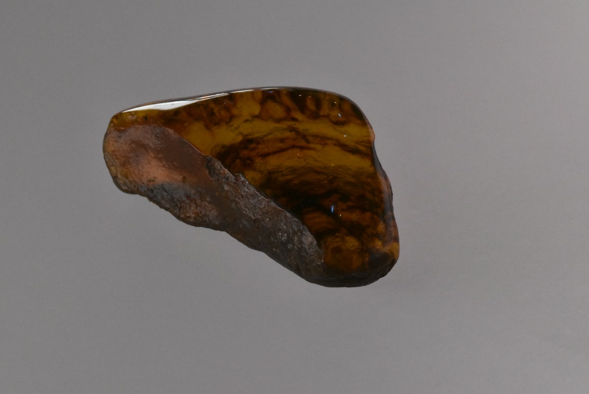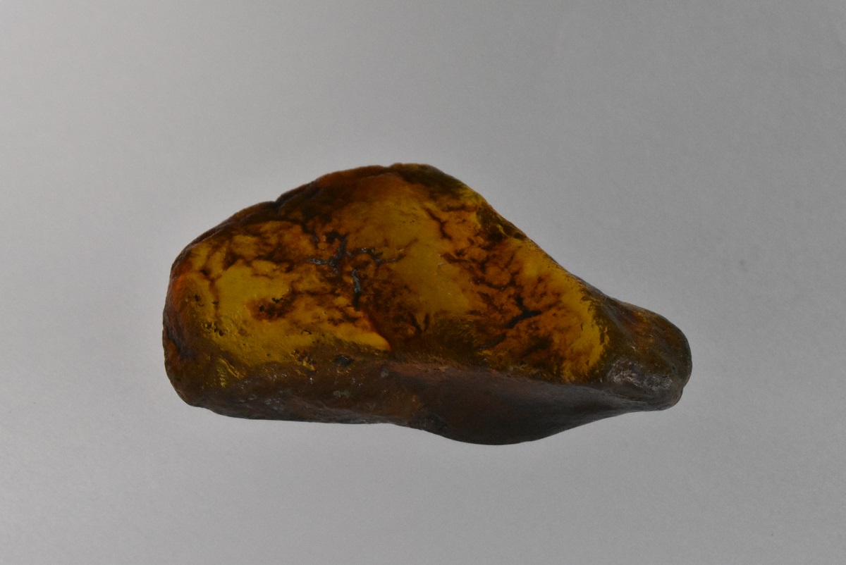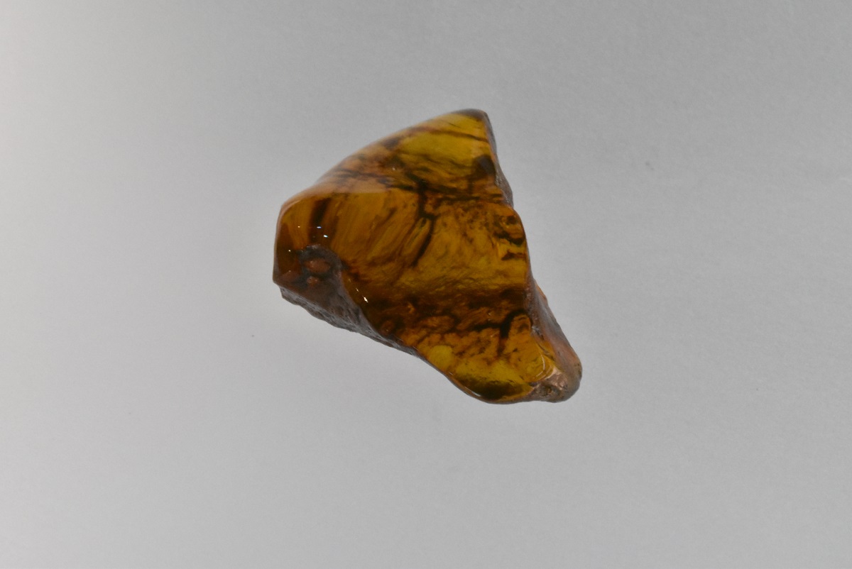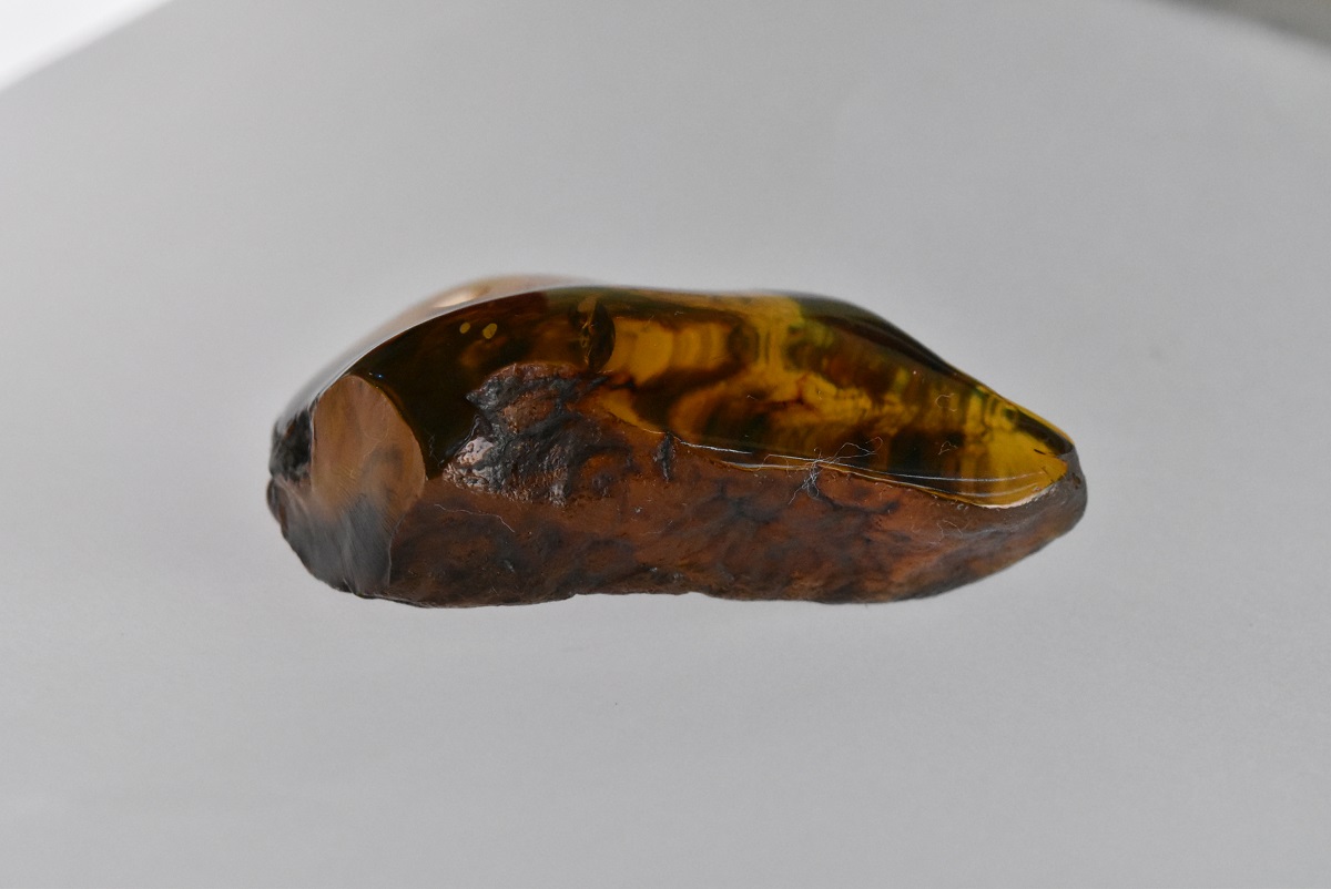 Pieza de ámbar amarillo musgoso chica triple A y en bruto atrás, esta pieza no tiene forma definida. Código 3454.