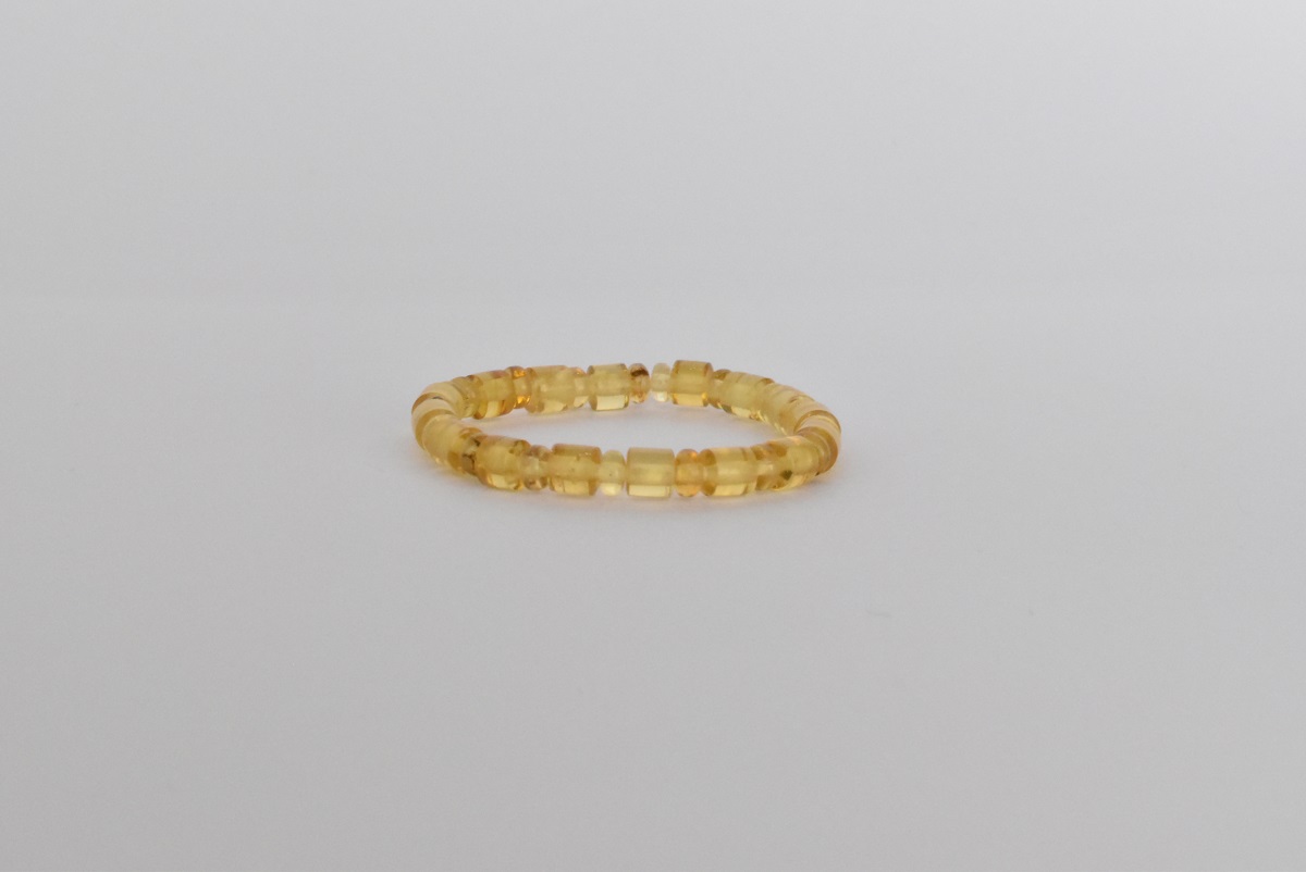 Delicada pulsera para bebé finamente diseñada para evitar cualquier forma de herida al menor, de ámbar amarillo en hilo elástico de alta resistencia. Código 2122.