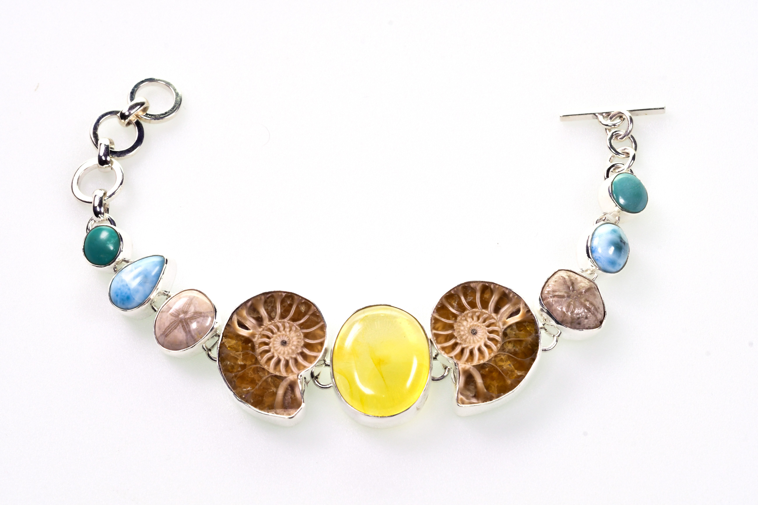 Amonite, turquesa, larimar y plata .925
