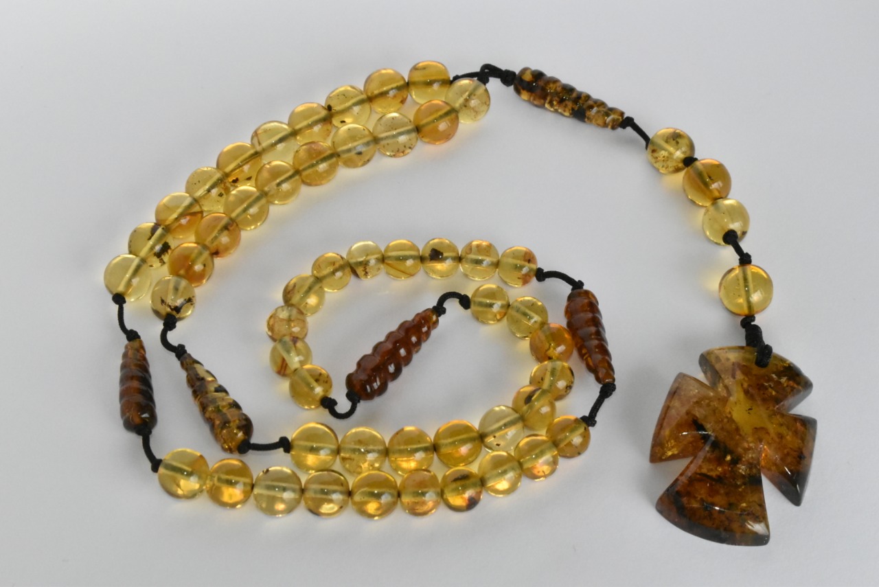 Ambar amarillo, madera y plata