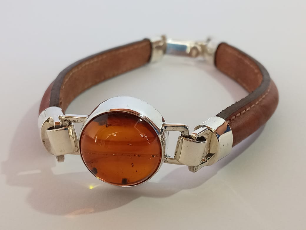 Ámbar amarillo, cuero y plata .925